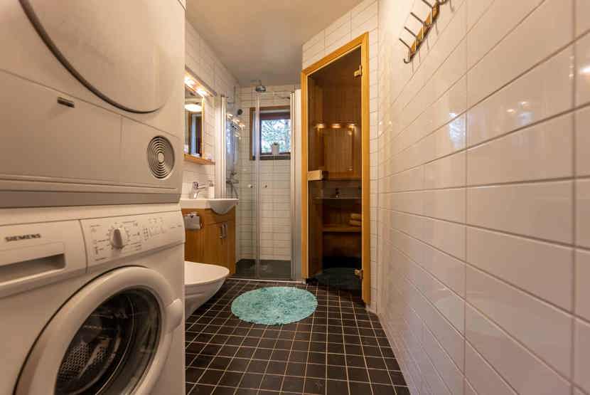 Badeværelset-1 = bruse/wc/sauna. Badeværelset-2 = wc.