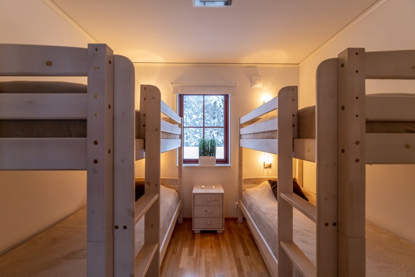 Soveværelse-1= 1 dobbeltseng. Soveværelse-2= 1 køjeseng med 120 cm bred underkøje . Soveværelse-3= 2 køjesenge.