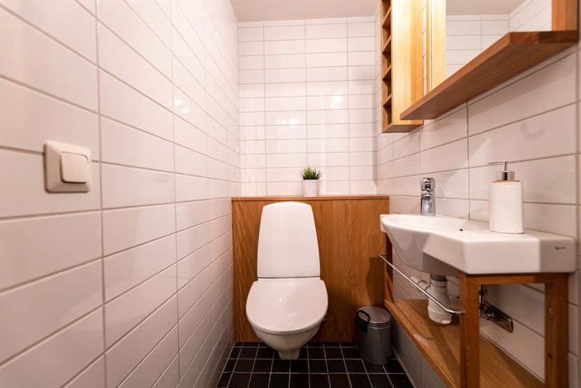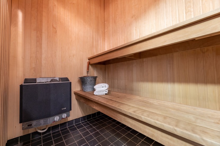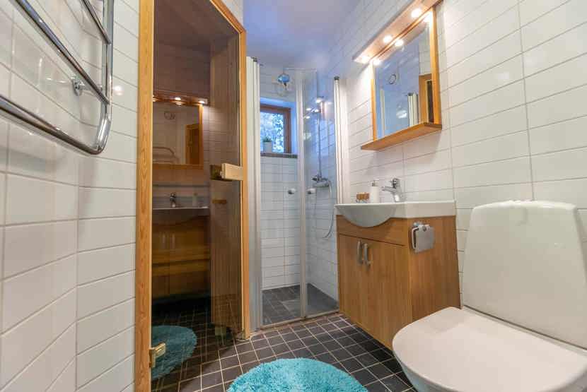 Badeværelset-1 = bruse/wc/sauna. Badeværelset-2 = wc.