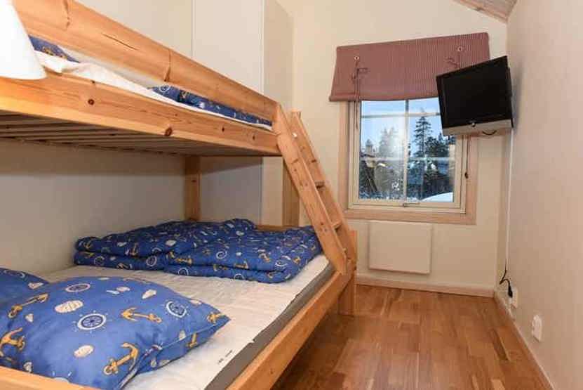 Soveværelse-1= 1 køjeseng med 120 cm bred underkøje . Soveværelse-2= 1 enkeltseng 120 cm bred, 1 enkeltseng.