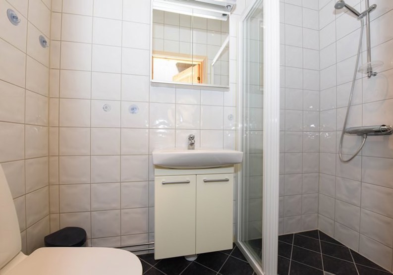 Badeværelset-1 = bruse/wc/sauna. Badeværelset-2 = bruse/wc.