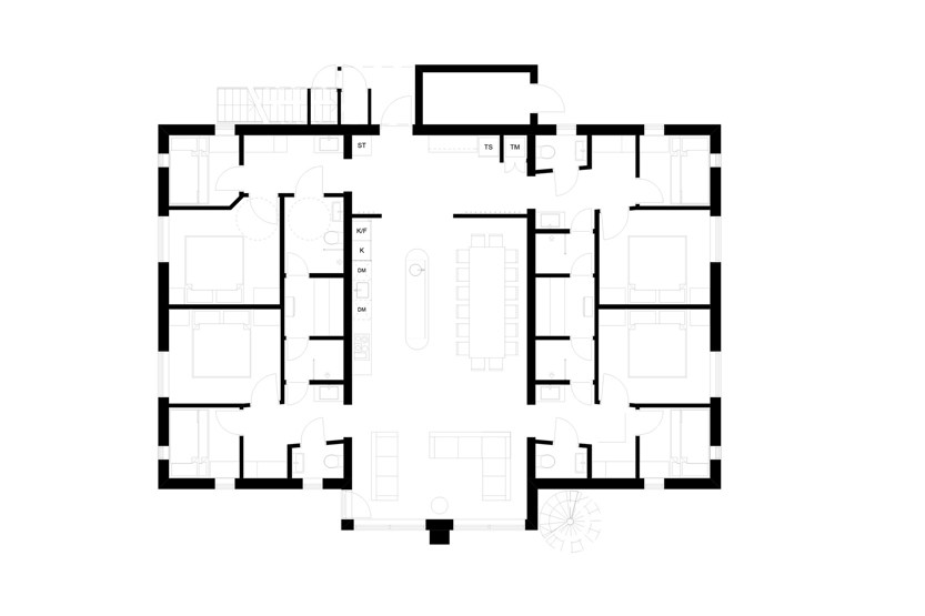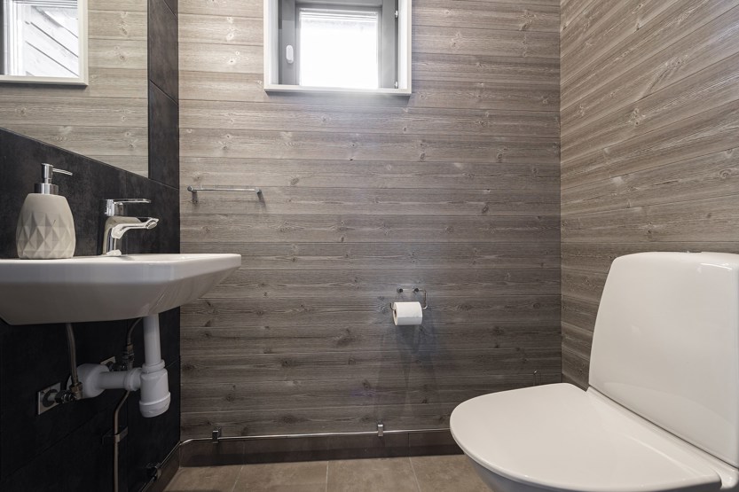 Badeværelset-1 = 2 bruse, wc, sauna, handicapvenlig. Badeværelset-2 = wc. Badeværelset-3 = wc. Badeværelset-4 = 2 bruse, sauna. Badeværelset-5 = wc.
