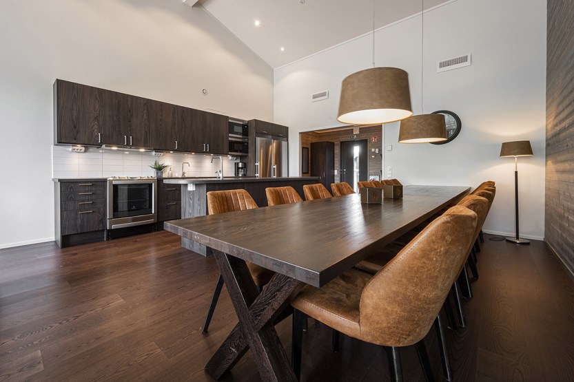 Køkkenet indeholder: keramiske kogeplader med ovn, køleskab, frys, 2 opvaskemaskiner, 2 microovne.