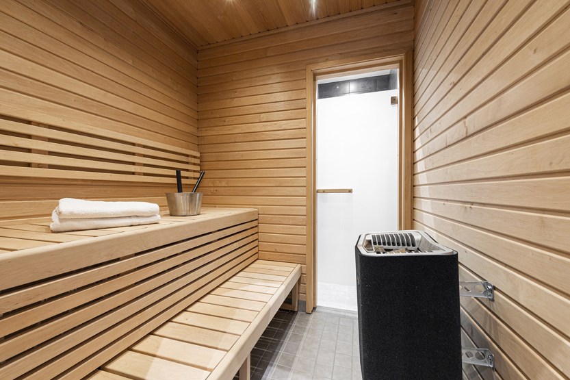 Badeværelset-1 = 2 bruse, wc, sauna, handicapvenlig. Badeværelset-2 = wc. Badeværelset-3 = wc. Badeværelset-4 = 2 bruse, sauna. Badeværelset-5 = wc.