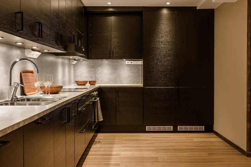 Køkkenet indeholder: kogeplade, ovn, køleskab, frys, microovn, 2 opvaskemaskiner.