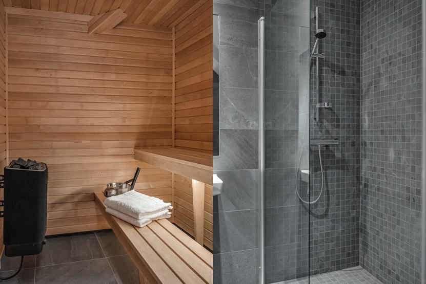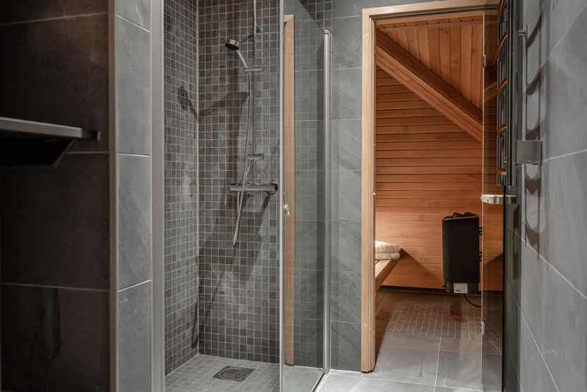 Badeværelset-1 = dobbelt brusebad, wc, sauna. Badeværelset-2 = wc. Badeværelset-3 = bruse/sauna. Badeværelset-4 = bruse/wc. Badeværelset-5 = wc.