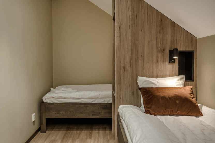 Soveværelse-1= 1 dobbeltseng. Soveværelse-2= 2 køjesenge. Soveværelse-3= 2 køjesenge. Soveværelse-4= 1 dobbeltseng. Soveværelse-5= 1 dobbeltseng. Soveværelse-6= 1 køjeseng.
