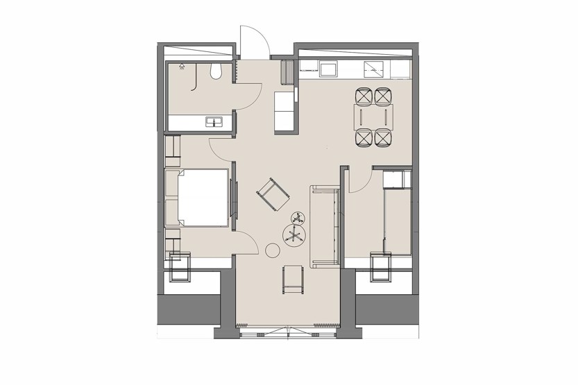 Lejlighed på 5 etage, 4 sengepladser, 54 m², 2 soveværelser, 1 bruser, 1 WC.