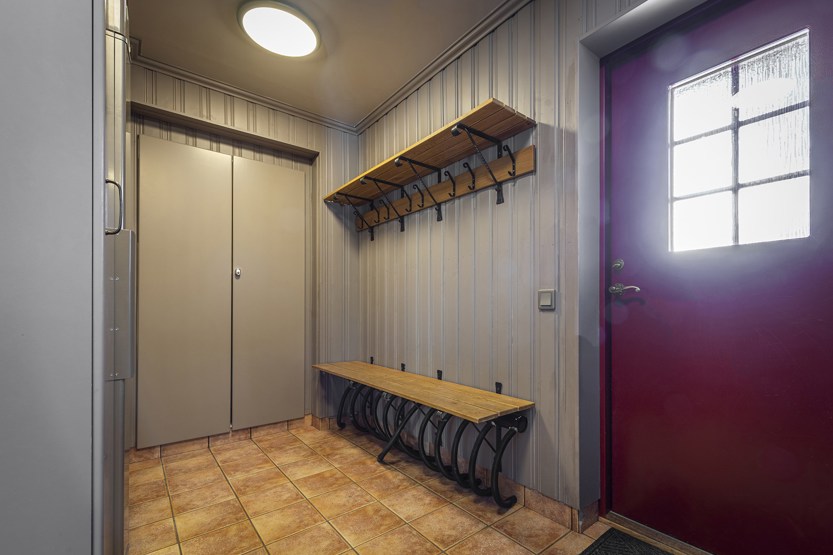 TV, tørreskab, 1 højstol, rum til skiudstyr.