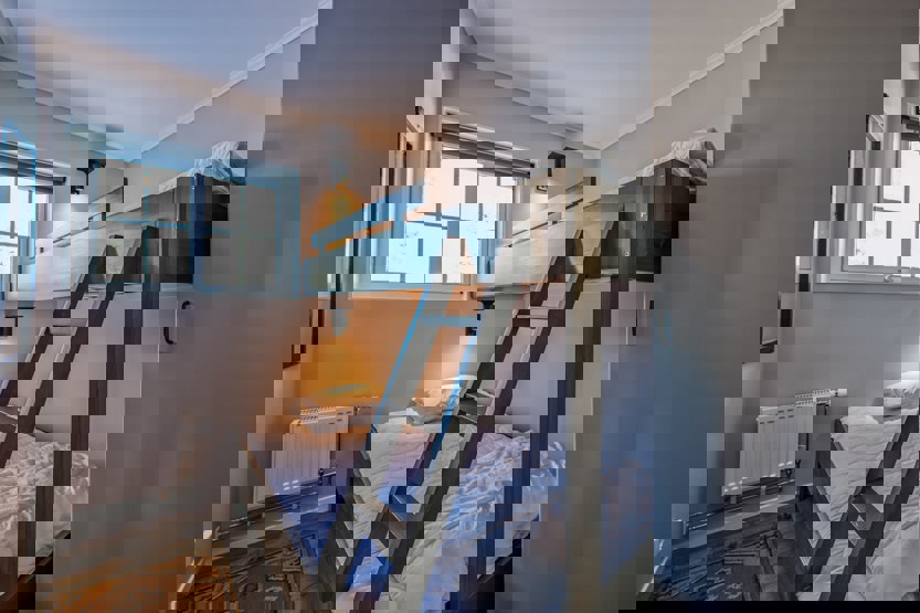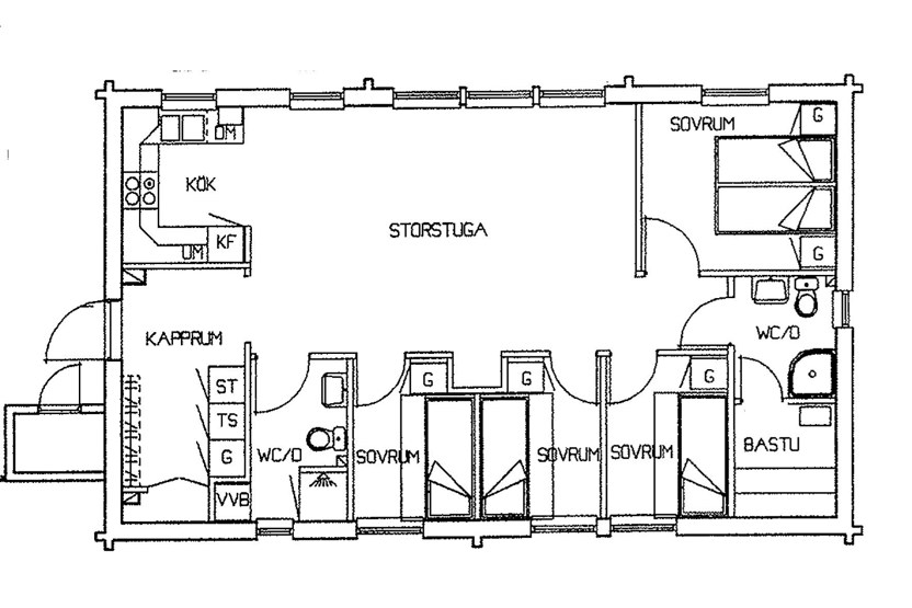 Soveværelse-1= 1 dobbeltseng. Soveværelse-2= 1 køjeseng med 120 cm bred underkøje . Soveværelse-3= 1 køjeseng med 120 cm bred underkøje . Soveværelse-4= 1 køjeseng med 120 cm bred underkøje .