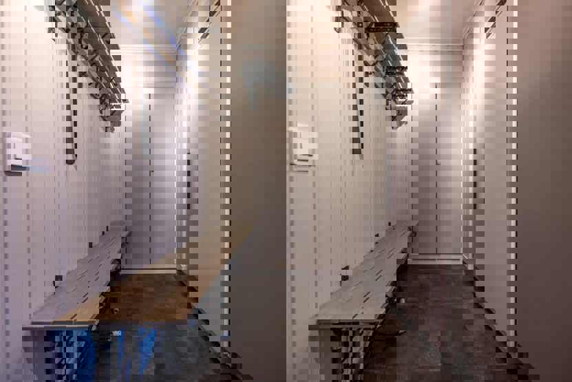 TV, tørreskab, 1 højstol, rum til skiudstyr.