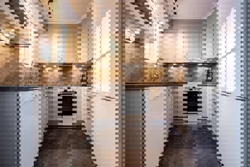 Opholdsstue med køkkenafdeling.