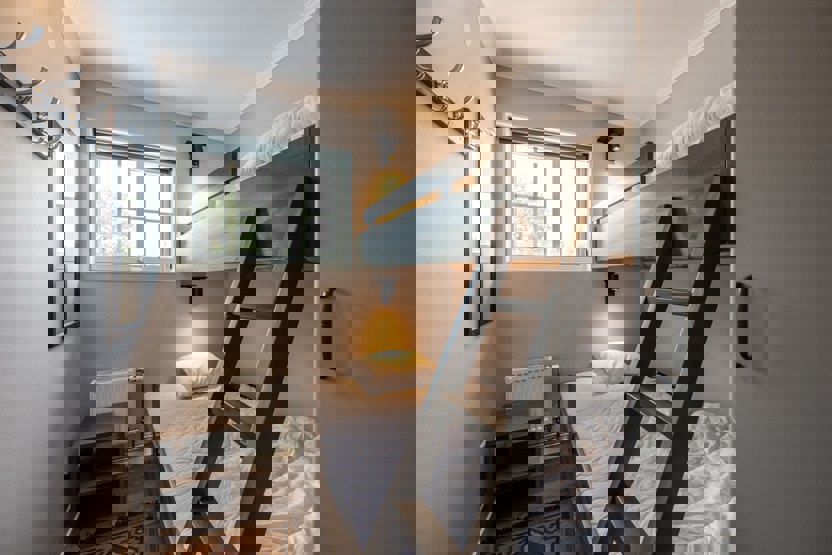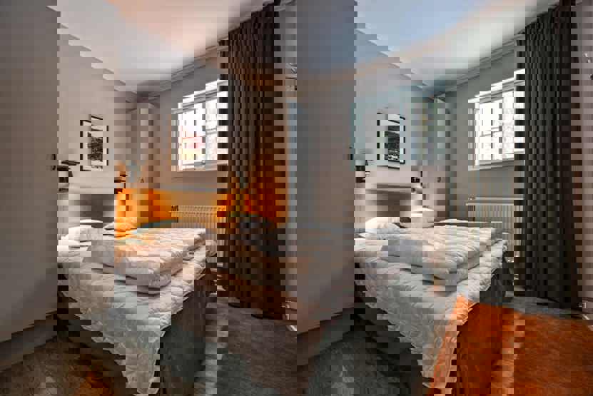 Soveværelse-1= 1 dobbeltseng. Soveværelse-2= 1 køjeseng med 120 cm bred underkøje . Soveværelse-3= 1 køjeseng med 120 cm bred underkøje . Soveværelse-4= 1 køjeseng med 120 cm bred underkøje .
