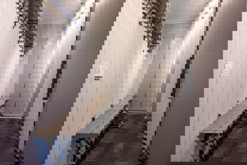 TV, tørreskab, 1 højstol, rum til skiudstyr.