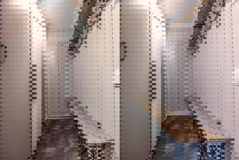 TV, tørreskab, 1 højstol, rum til skiudstyr.