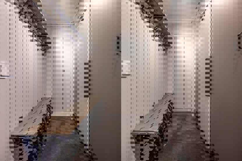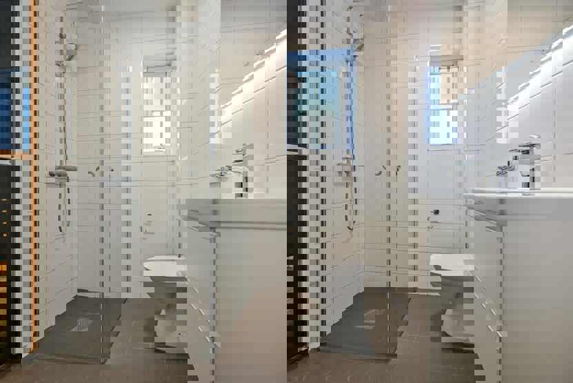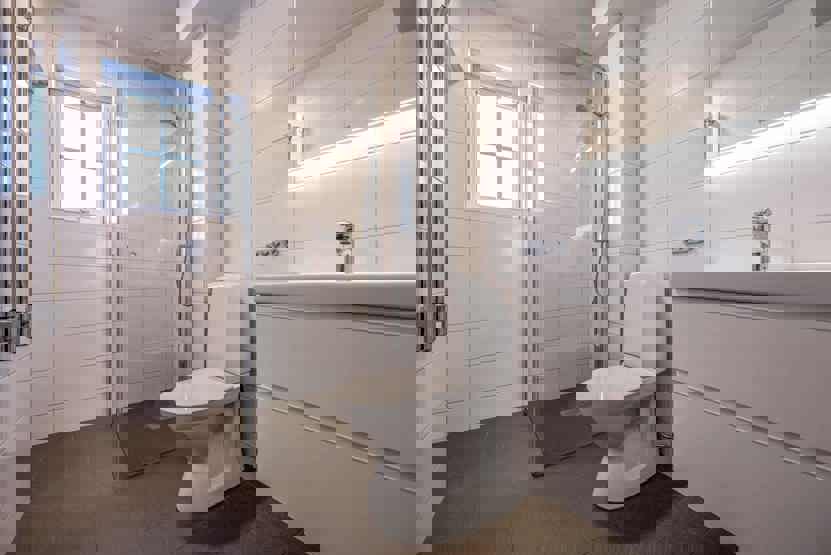 Badeværelset-1 = bruse/wc/sauna. Badeværelset-2 = bruse/wc.