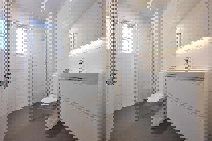 Badeværelset-1 = bruse/wc/sauna. Badeværelset-2 = bruse/wc.