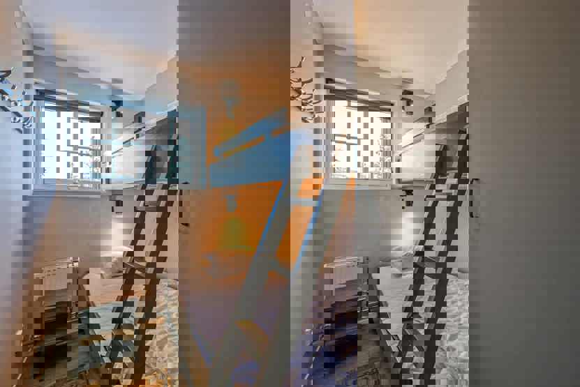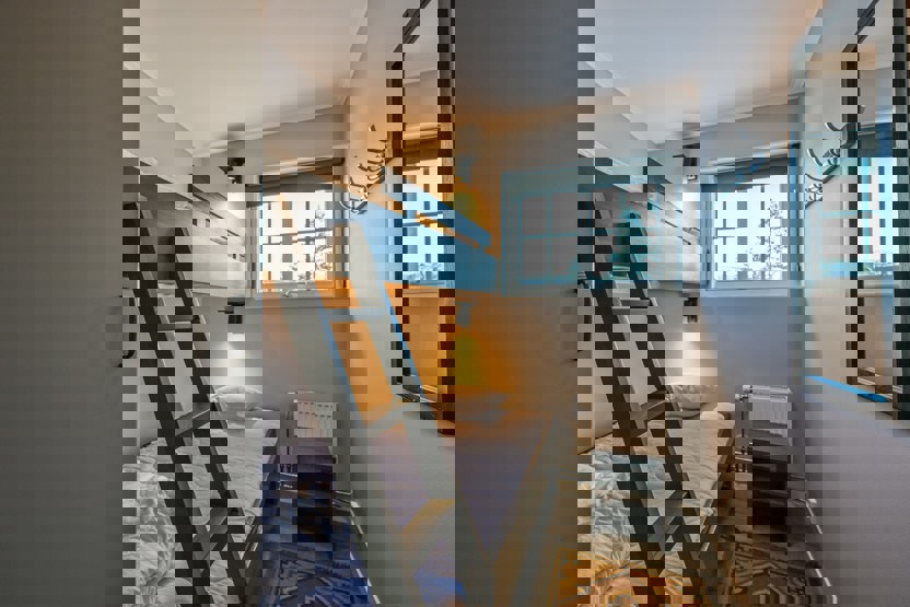 Soveværelse-1= 1 dobbeltseng. Soveværelse-2= 1 køjeseng med 120 cm bred underkøje . Soveværelse-3= 1 køjeseng med 120 cm bred underkøje . Soveværelse-4= 1 køjeseng med 120 cm bred underkøje .