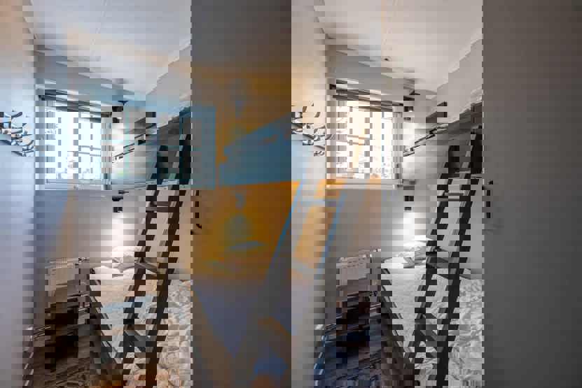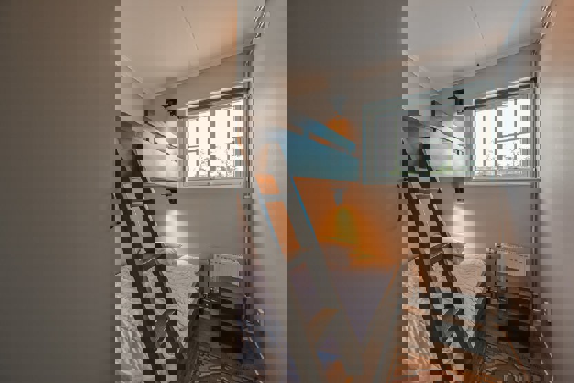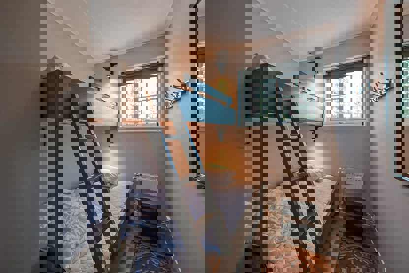 Soveværelse-1= 1 dobbeltseng. Soveværelse-2= 1 køjeseng med 120 cm bred underkøje . Soveværelse-3= 1 køjeseng med 120 cm bred underkøje . Soveværelse-4= 1 køjeseng med 120 cm bred underkøje .