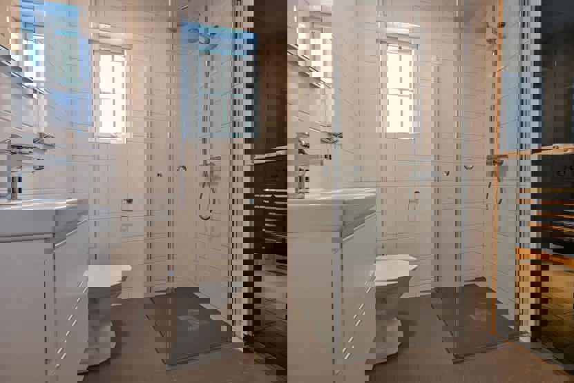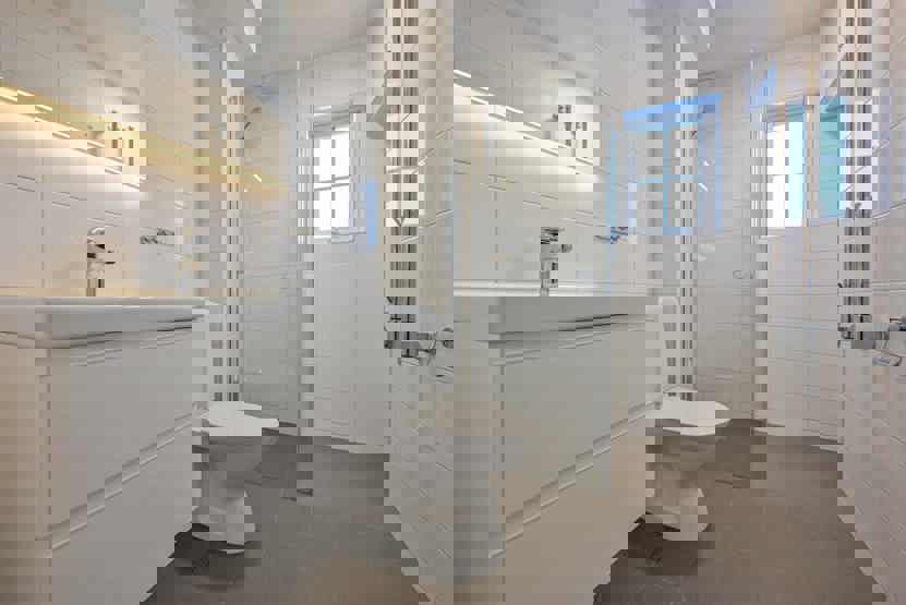 Badeværelset-1 = bruse/wc/sauna. Badeværelset-2 = bruse/wc.