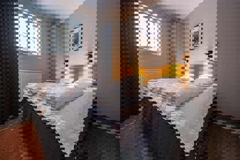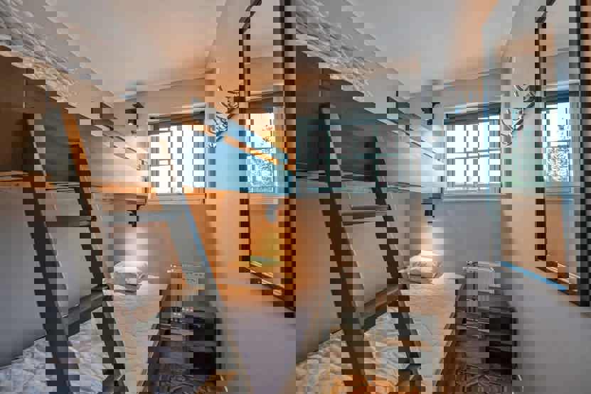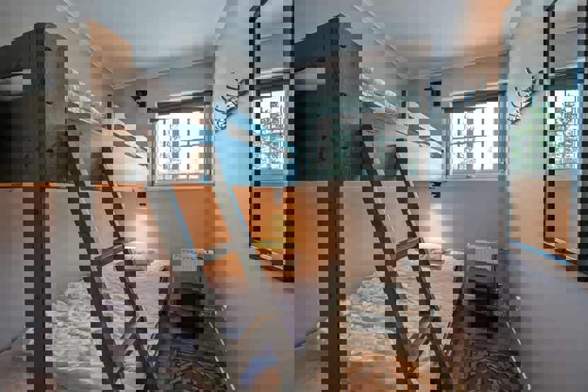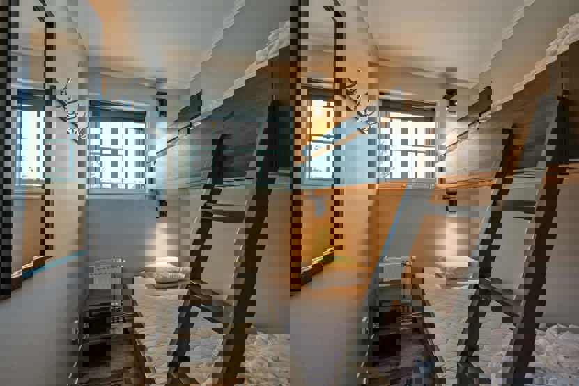 Soveværelse-1= 1 dobbeltseng. Soveværelse-2= 1 køjeseng med 120 cm bred underkøje . Soveværelse-3= 1 køjeseng med 120 cm bred underkøje . Soveværelse-4= 1 køjeseng med 120 cm bred underkøje .