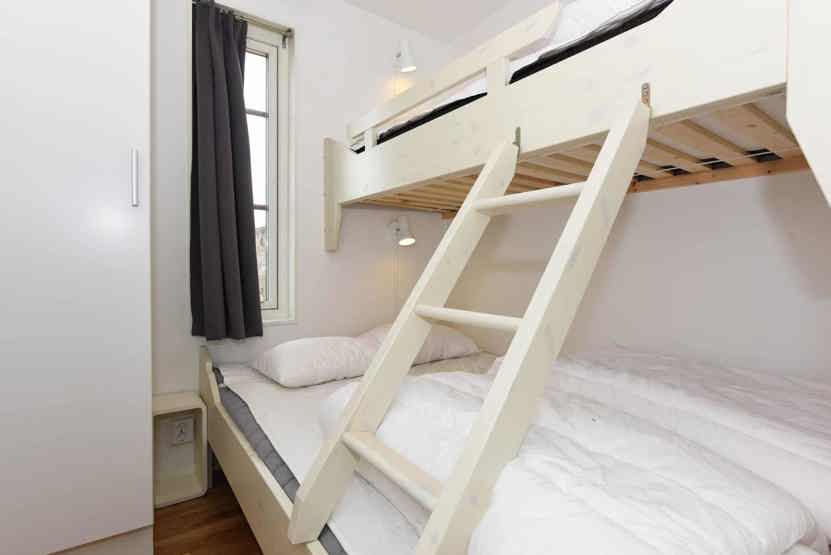 Soveværelse-1= 1 dobbeltseng 180 cm bred. Soveværelse-2= 1 dobbeltseng 180 cm bred. Soveværelse-3= 1 køyeseng med 140 cm bred underkøye og 80 cm bred overkøye. Soveværelse-4= 1 køyeseng med 140 cm bred underkøye og 80 cm bred overkøye.