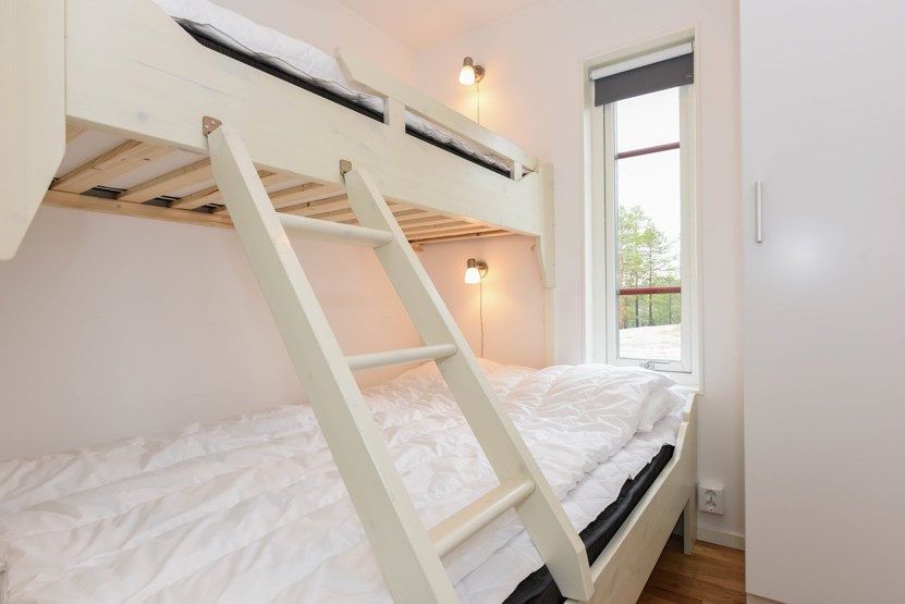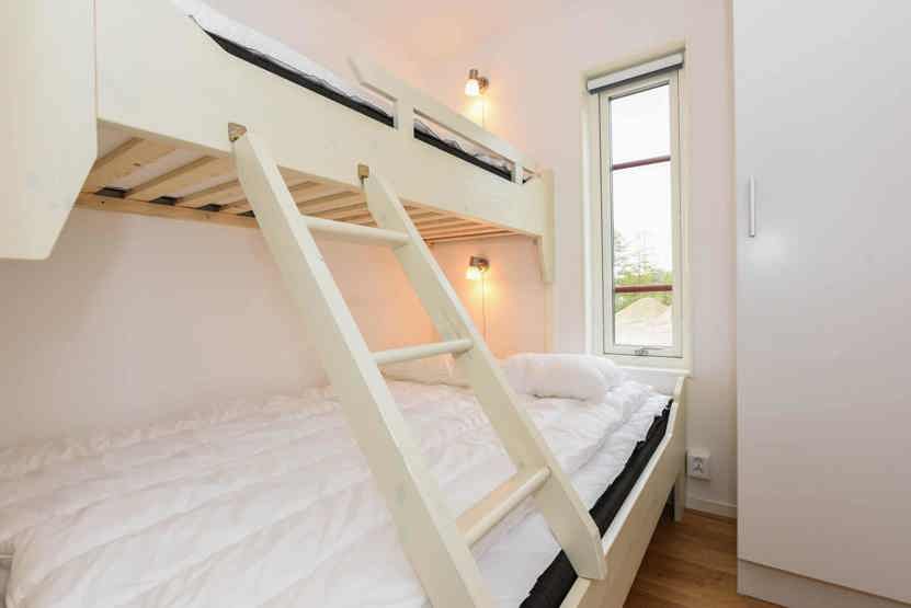 Soveværelse-1= 1 dobbeltseng. Soveværelse-2= 1 køjeseng med 140 cm bred underkøje . Soveværelse-3= 1 dobbeltseng. Soveværelse-4= 1 køjeseng med 140 cm bred underkøje .