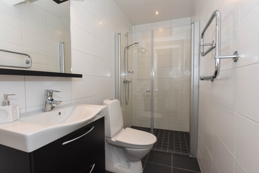Badeværelset-1 = bruse/wc/sauna. Badeværelset-2 = bruse/wc.
