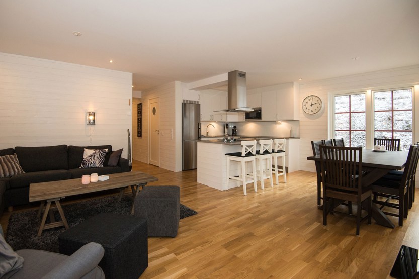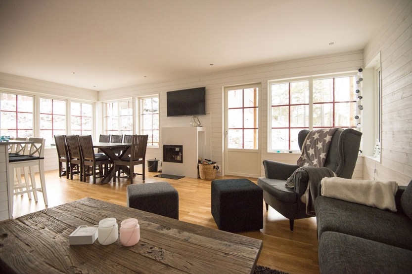 TV, brændeovn (brænde indgår ikke), tørreskab, vaskemaskine, tørretumbler, skistøvletører, rum til skiudstyr, altan (skovles ikke).