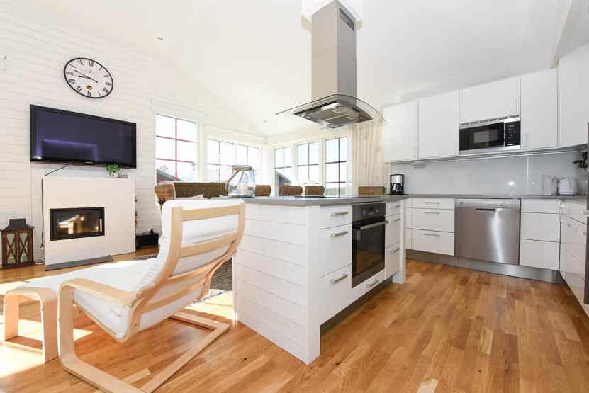 Køkkenet indeholder: keramiske kogeplader med ovn, køleskab, frys, opvaskemaskine, microovn.