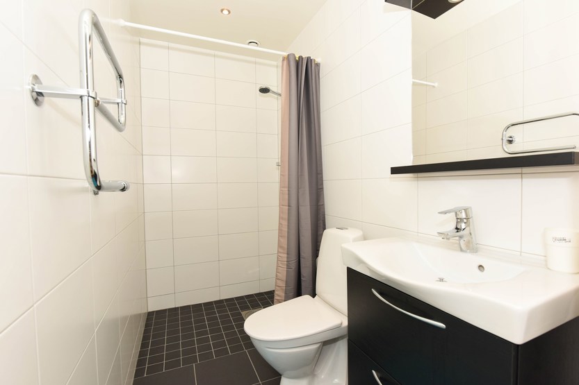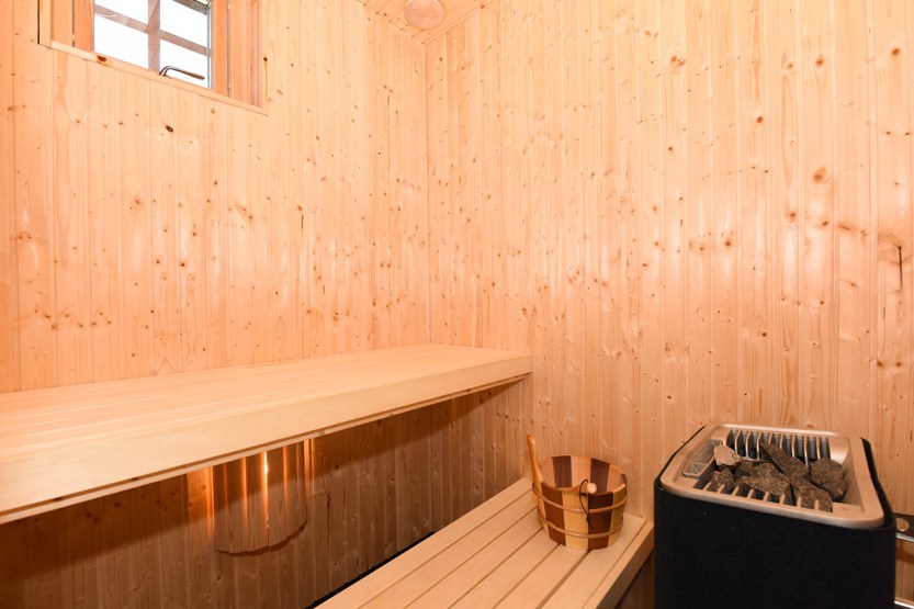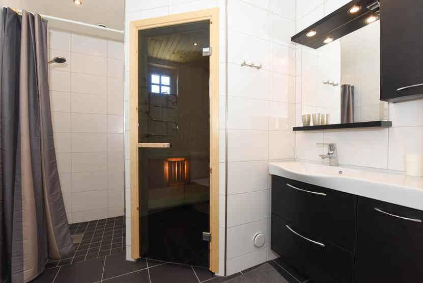 Badeværelset-1 = bruse/wc/sauna. Badeværelset-2 = bruse/wc/håndklædetørrer.