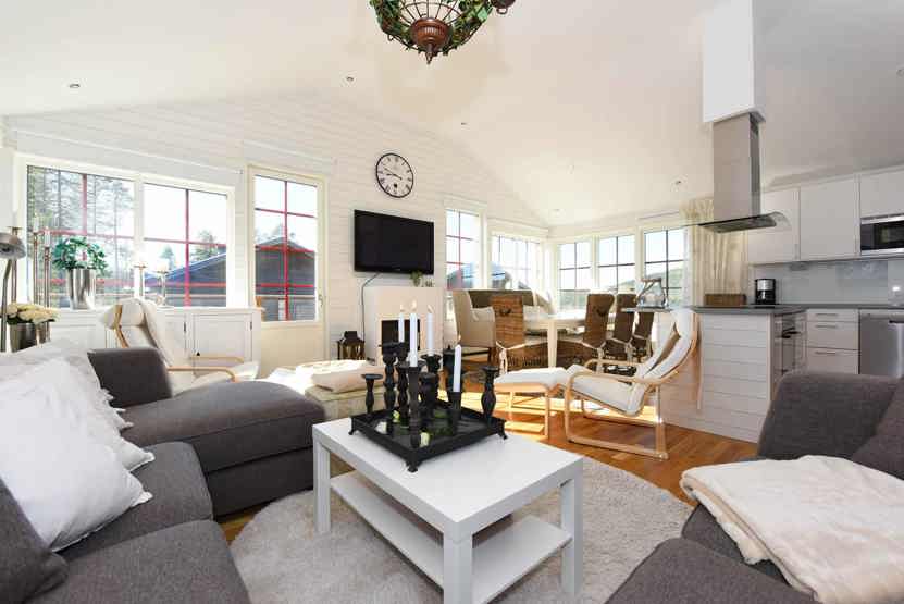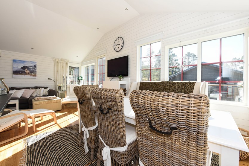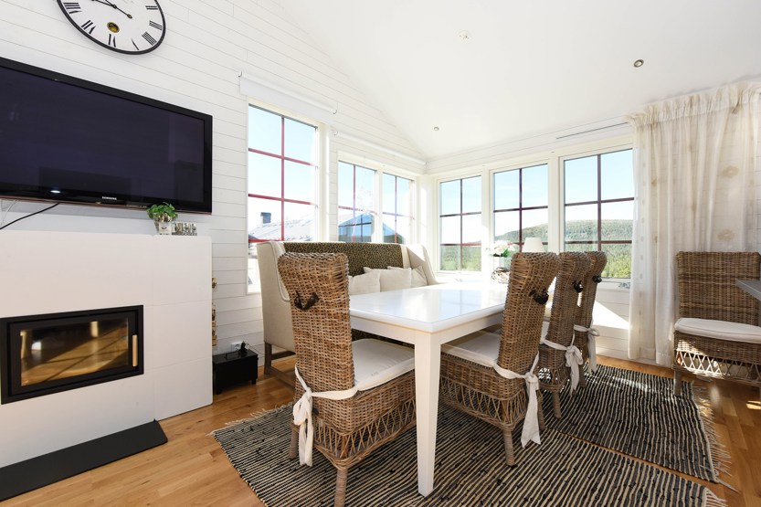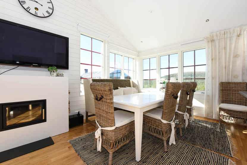 TV, brændeovn (brænde indgår ikke), tørreskab, vaskemaskine, tørretumbler, rum til skiudstyr, havem¢bler, balkon.