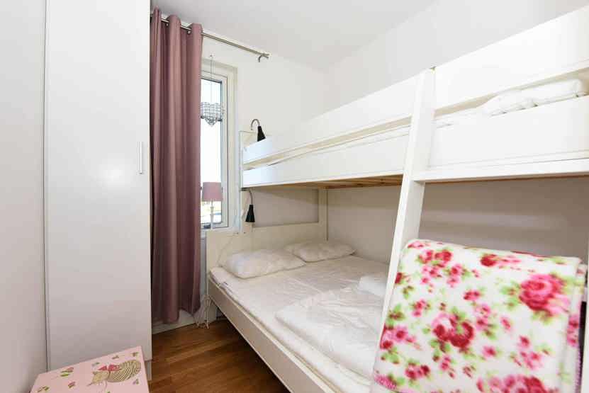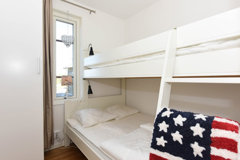 Soveværelse-1= 1 dobbeltseng. Soveværelse-2= 1 køjeseng med 120 cm bred underkøje . Soveværelse-3= 1 køjeseng med 120 cm bred underkøje . Soveværelse-4= 1 dobbeltseng.