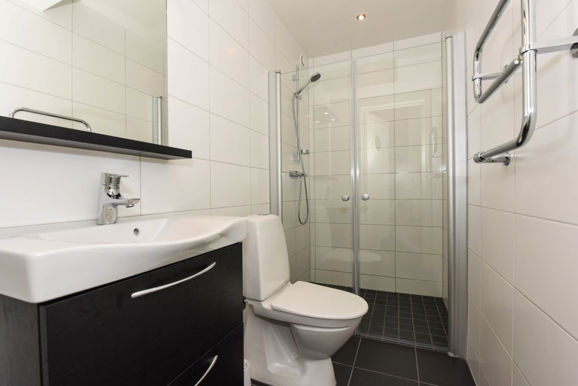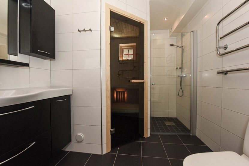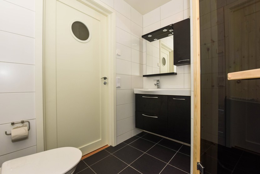 Badeværelset-1 = bruse/wc/sauna. Badeværelset-2 = bruse/wc.