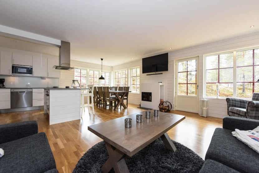 TV, brændeovn (brænde indgår ikke), tørreskab, vaskemaskine, tørretumbler, rum til skiudstyr, altan (skovles ikke), adgang til elbilopladere med type 2 stik mod betaling.