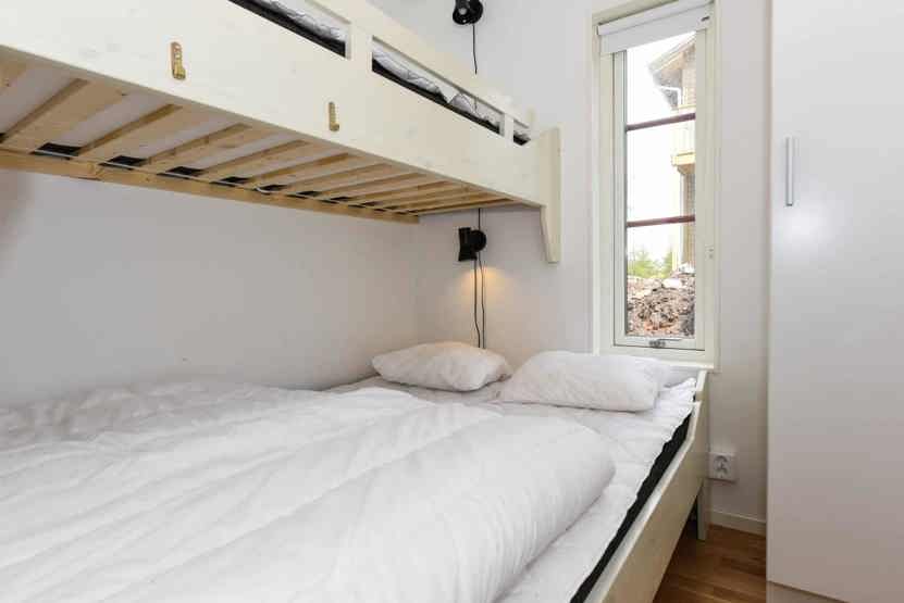 Soveværelse-1= 1 dobbeltseng. Soveværelse-2= 1 køjeseng. Soveværelse-3= 1 dobbeltseng. Soveværelse-4= 1 køjeseng.