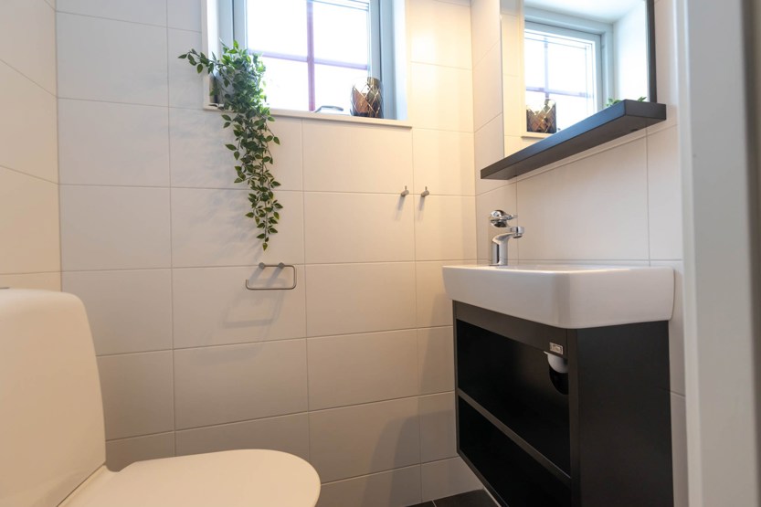Badeværelset-1 = bruse/wc/sauna. Badeværelset-2 = wc.