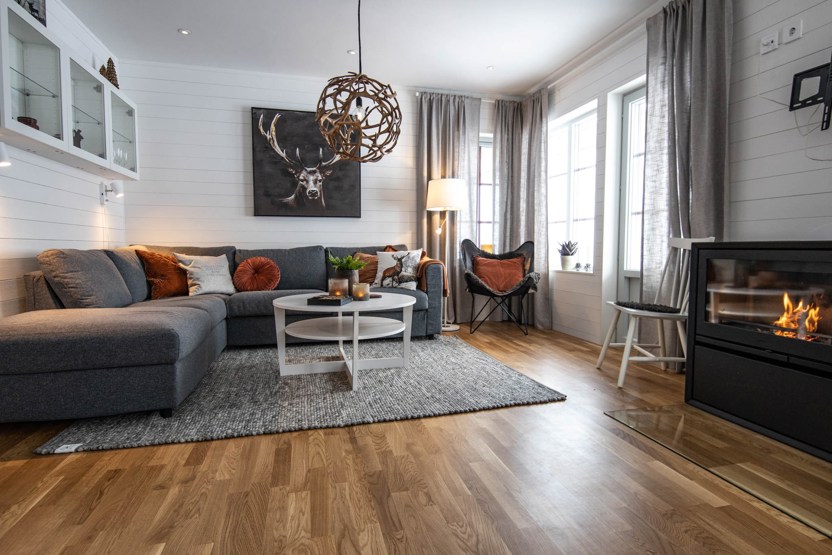 TV, brændeovn (brænde indgår ikke), vaskemaskine, tørretumbler, skistøvletører, tørreskab, strygejern og strygebræt, rum til skiudstyr, altan (skovles ikke).