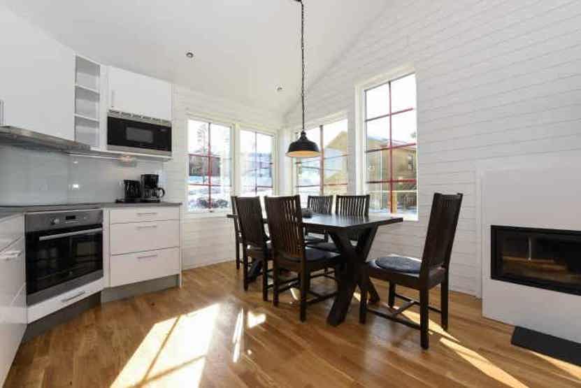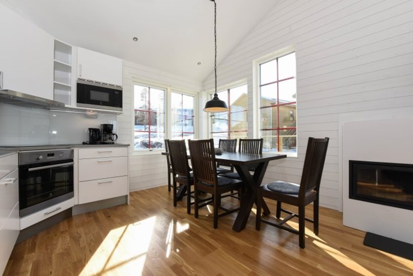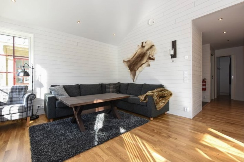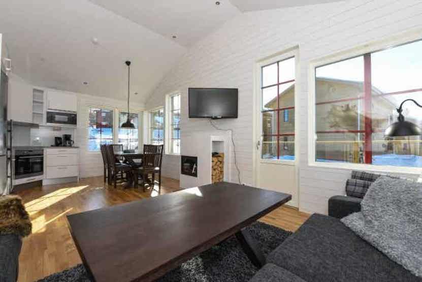 TV, brændeovn (brænde indgår ikke), balkon, tørreskab, vaskemaskine, tørretumbler, skistøvletører, rum til skiudstyr.