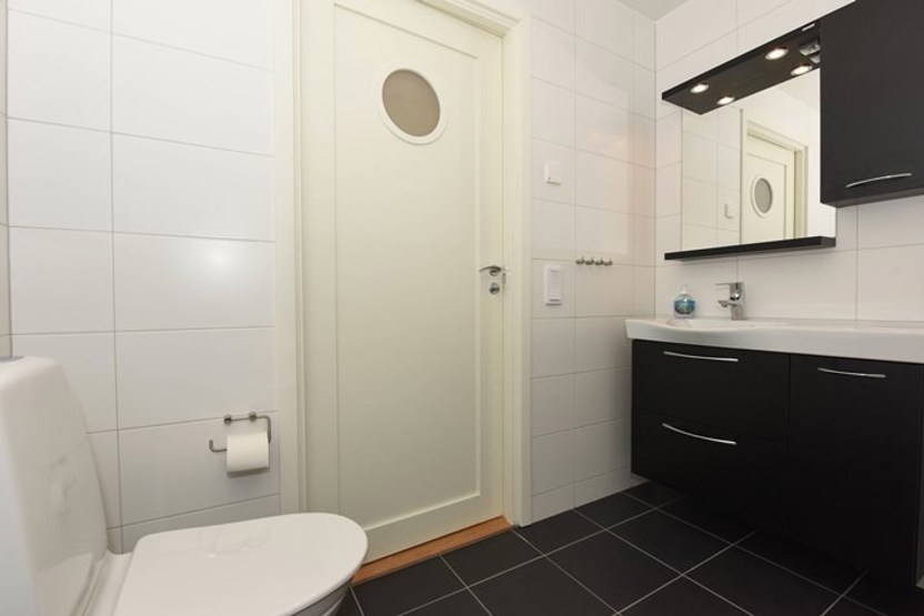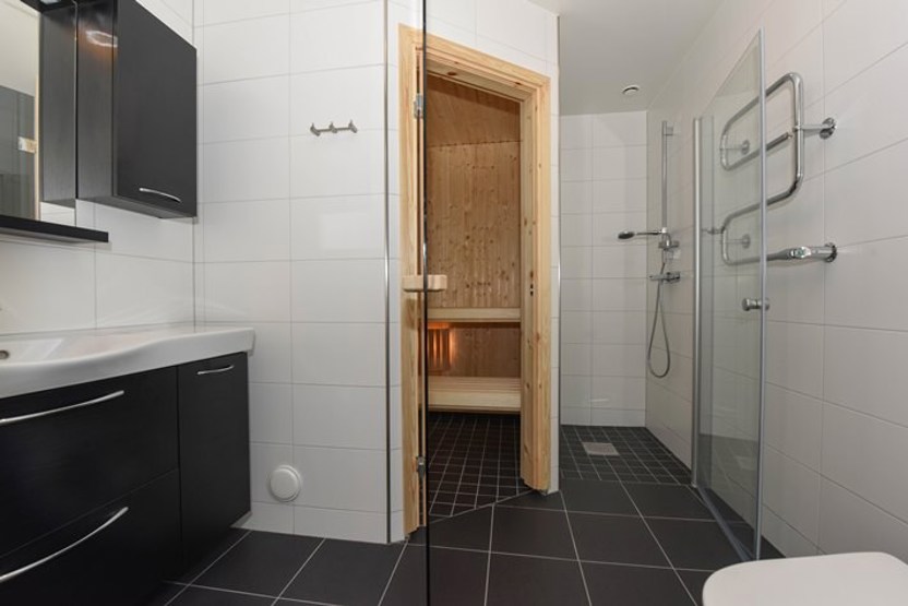 Badeværelset-1 = bruse/wc/sauna. Badeværelset-2 = wc.