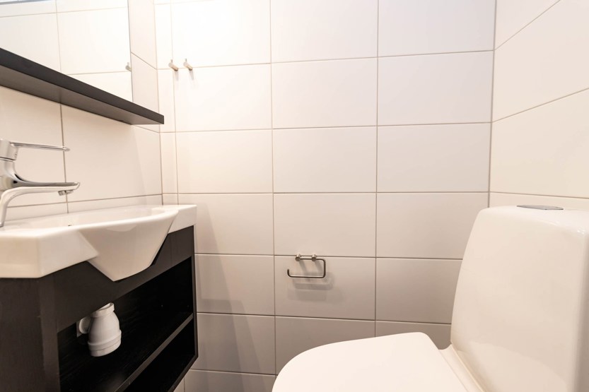 Badeværelset-1 = bruse/wc/sauna. Badeværelset-2 = wc.