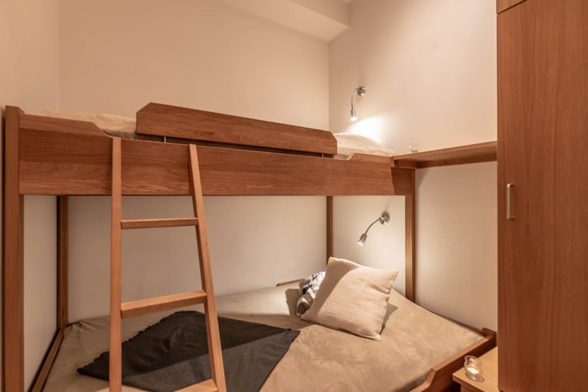 Soveværelse-1= 1 dobbeltseng. Soveværelse-2 (uden vindue)= 1 køjeseng med 140 cm bred underkøje. Soveværelse-3 (uden vindue)= 1 køjeseng.