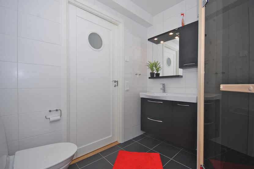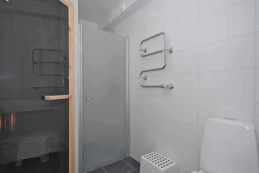 Badeværelset-1 = bruse/wc/sauna. Badeværelset-2 = wc.