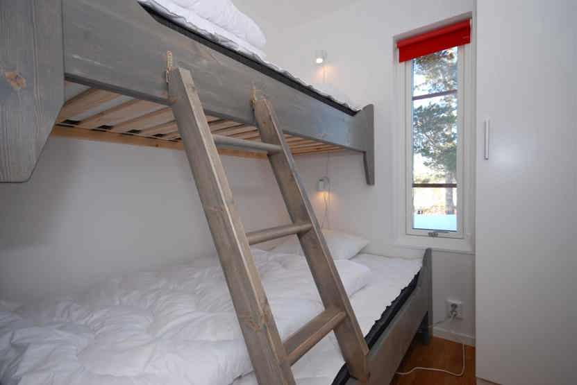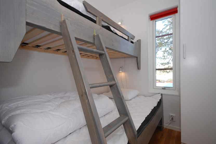 Soveværelse-1= 1 dobbeltseng. Soveværelse-2= 1 køjeseng med 120 cm bred underkøje . Soveværelse-3= 1 køjeseng med 120 cm bred underkøje .