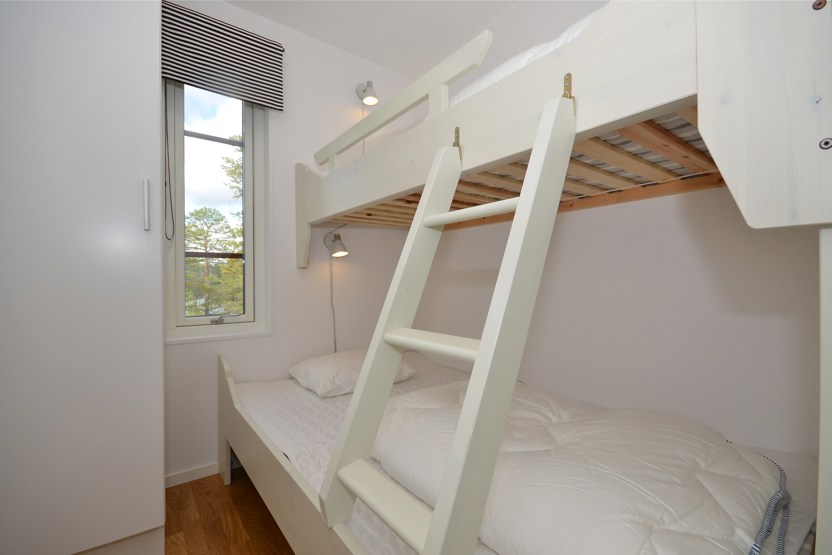 Soveværelse-1= 1 dobbeltseng. Soveværelse-2= 1 køjeseng med 120 cm bred underkøje . Soveværelse-3= 1 køjeseng med 120 cm bred underkøje .