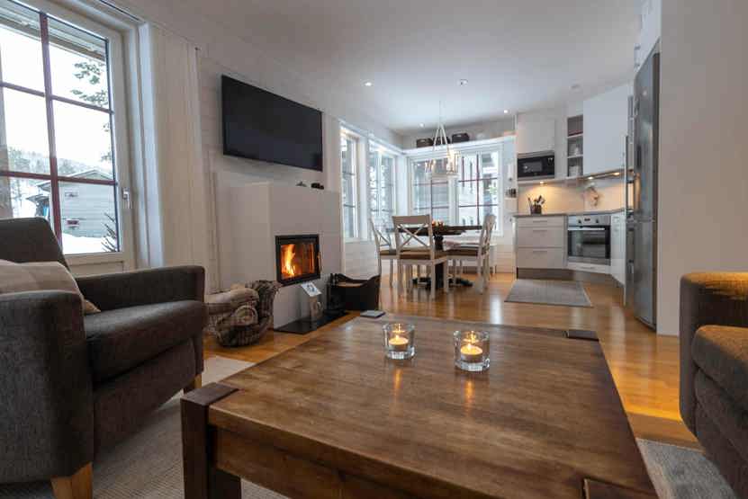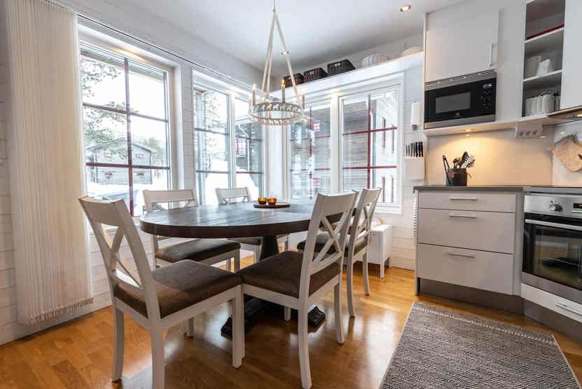 TV, brændeovn (brænde indgår ikke), altan (skovles ikke), tørreskab, vaskemaskine, tørretumbler, skistøvletører, rum til skiudstyr, adgang til elbilopladere med type 2 stik mod betaling.