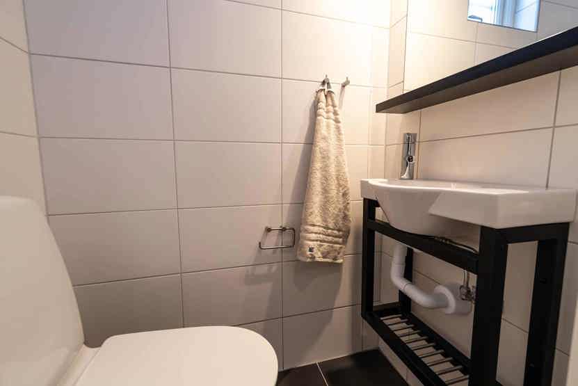 Badeværelset-1 = bruse/wc/sauna. Badeværelset-2 = wc.