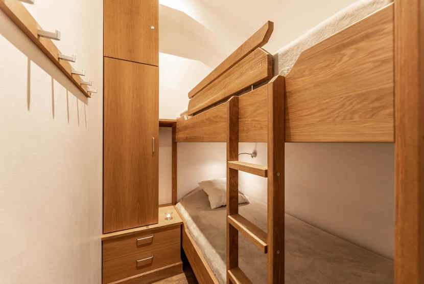 Soveværelse-1= 1 dobbeltseng. Soveværelse-2 (uden vindue)= 1 køjeseng med 140 cm bred underkøje. Soveværelse-3 (uden vindue)= 1 køjeseng.