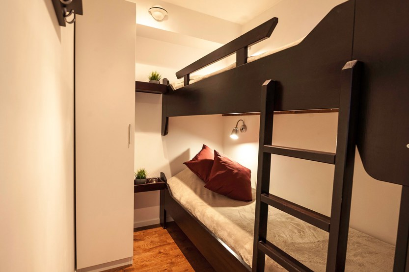 Soveværelse-1= 1 dobbeltseng. Soveværelse-2 (uden vindue)= 1 køjeseng med 120 cm bred underkøje . Soveværelse-3 (uden vindue)= 1 køjeseng.
