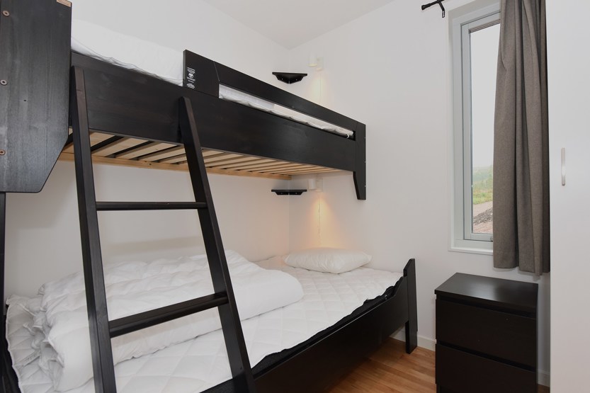 Soveværelse-1= 1 dobbeltseng 160 cm bred. Soveværelse-2= 1 køyeseng med 120 cm bred underkøye og 80 cm bred overkøye. Soveværelse-3= 1 køyeseng med 120 cm bred underkøye og 80 cm bred overkøye.